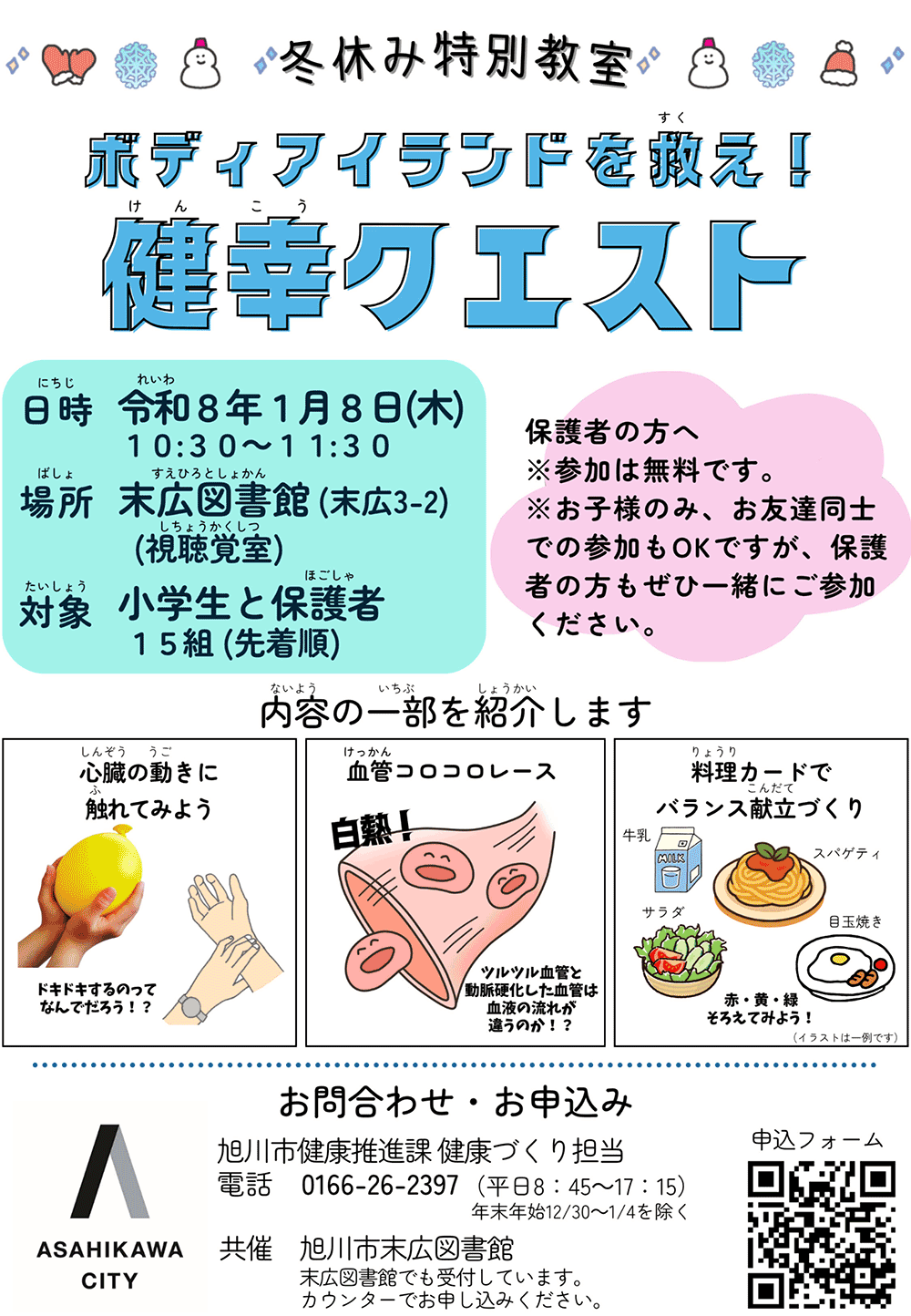 ■申込/旭川市健康推進課健康づくり担当26-2397または末広図書館へ