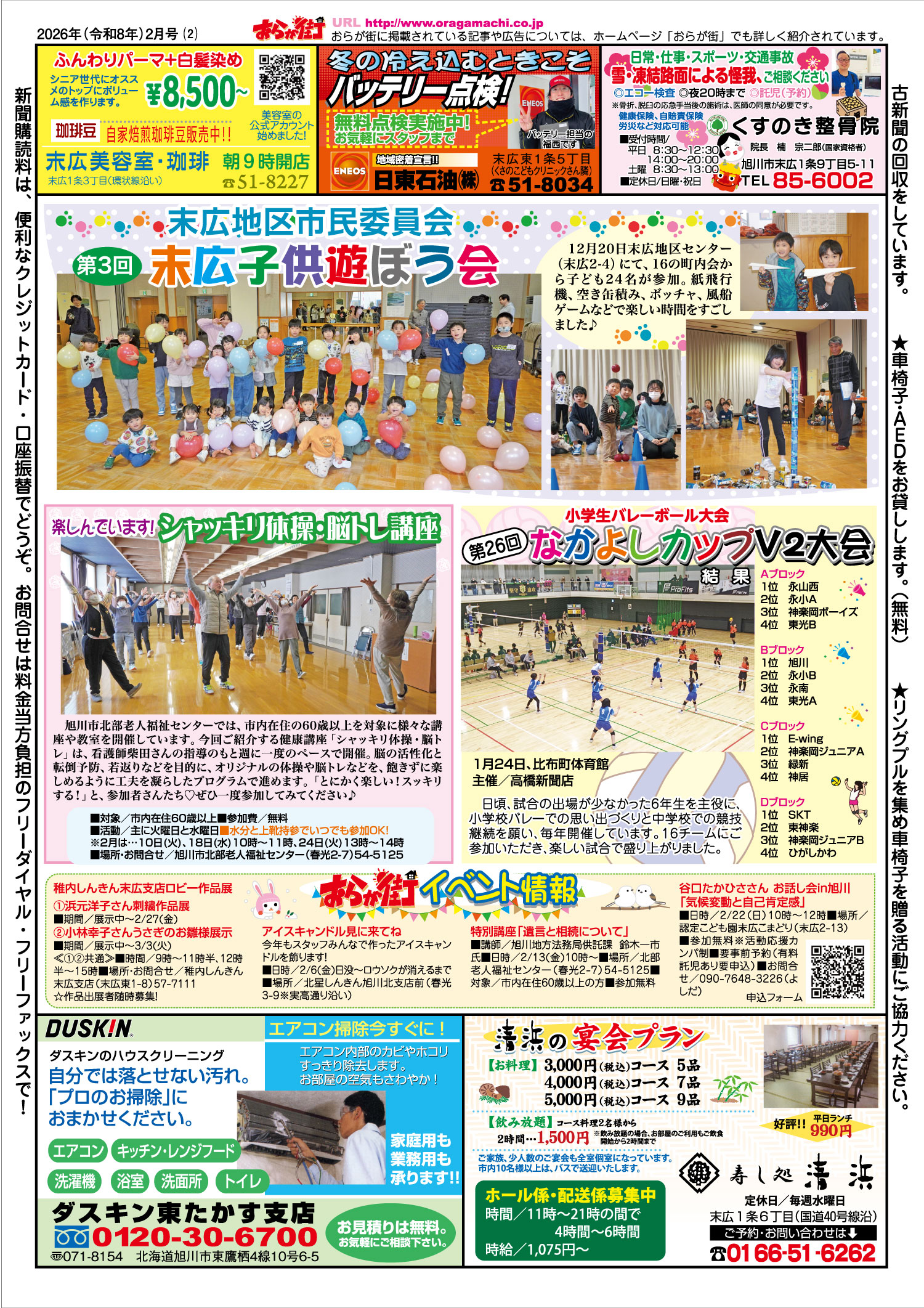 ■2面… 末広地区市民委員会 第3回末広子供遊ぼう会) / 楽しんでいます!シャッキリ体操・脳トレ講座 / 小学生バレーボール大会 第26回なかよしカップV2大会