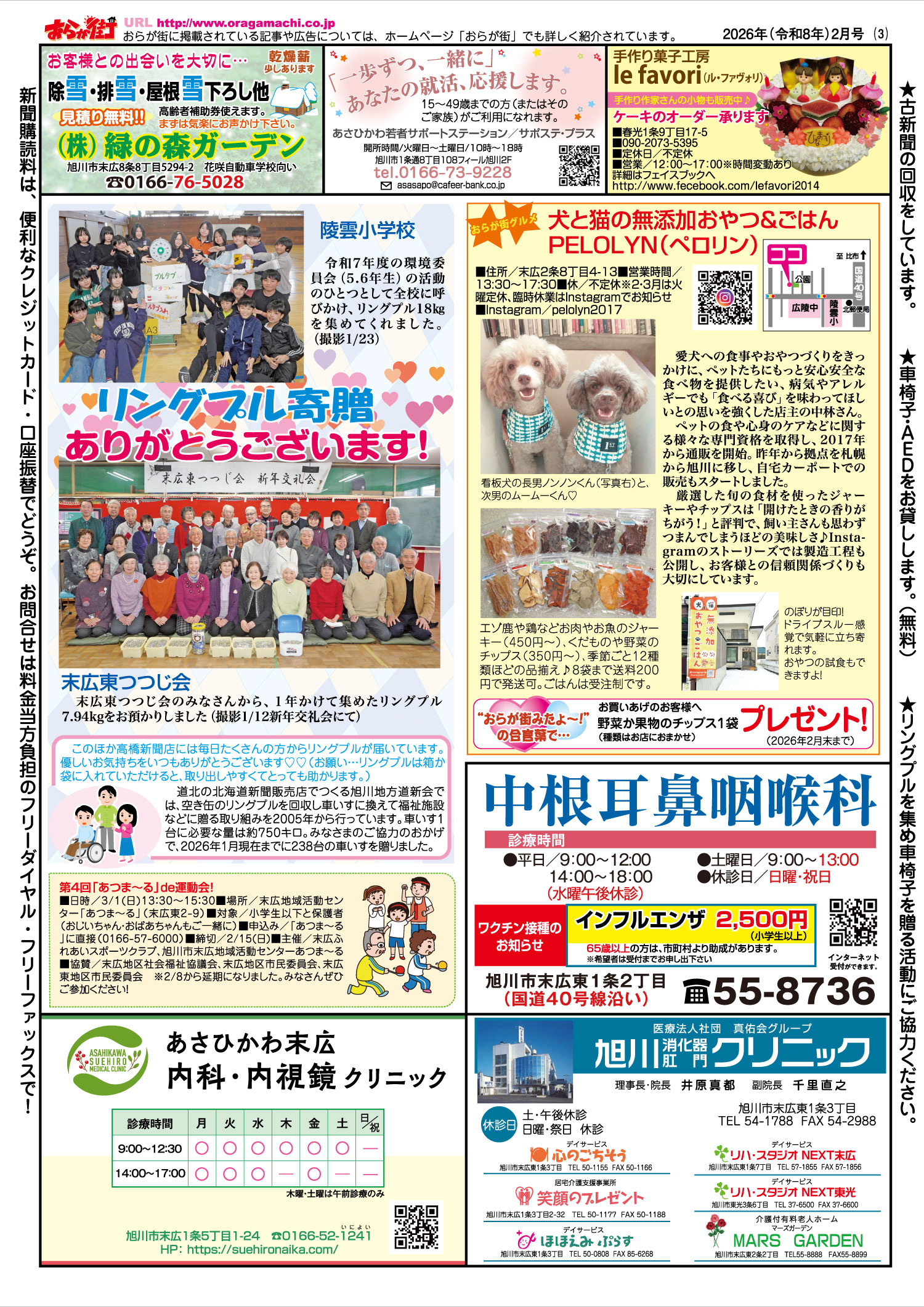 ■3面… リングプル寄贈ありがとうございます!(陵雲小学校・末広東つつじ会) / お店紹介『犬と猫の無添加おやつ&ごはん PELOLYN(ペロリン)』