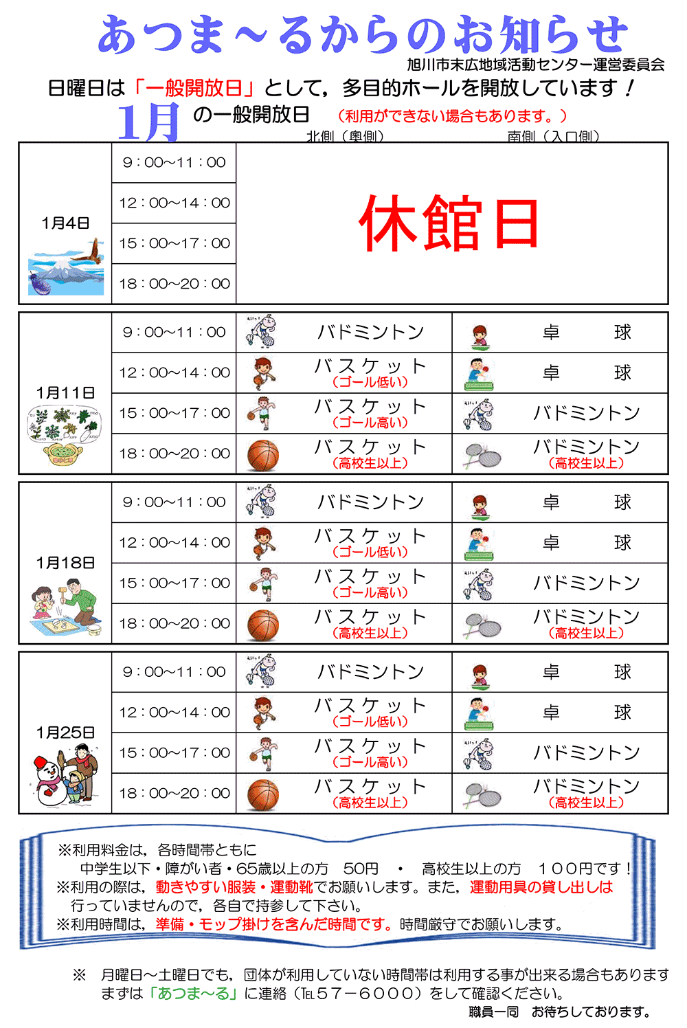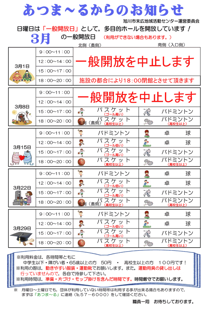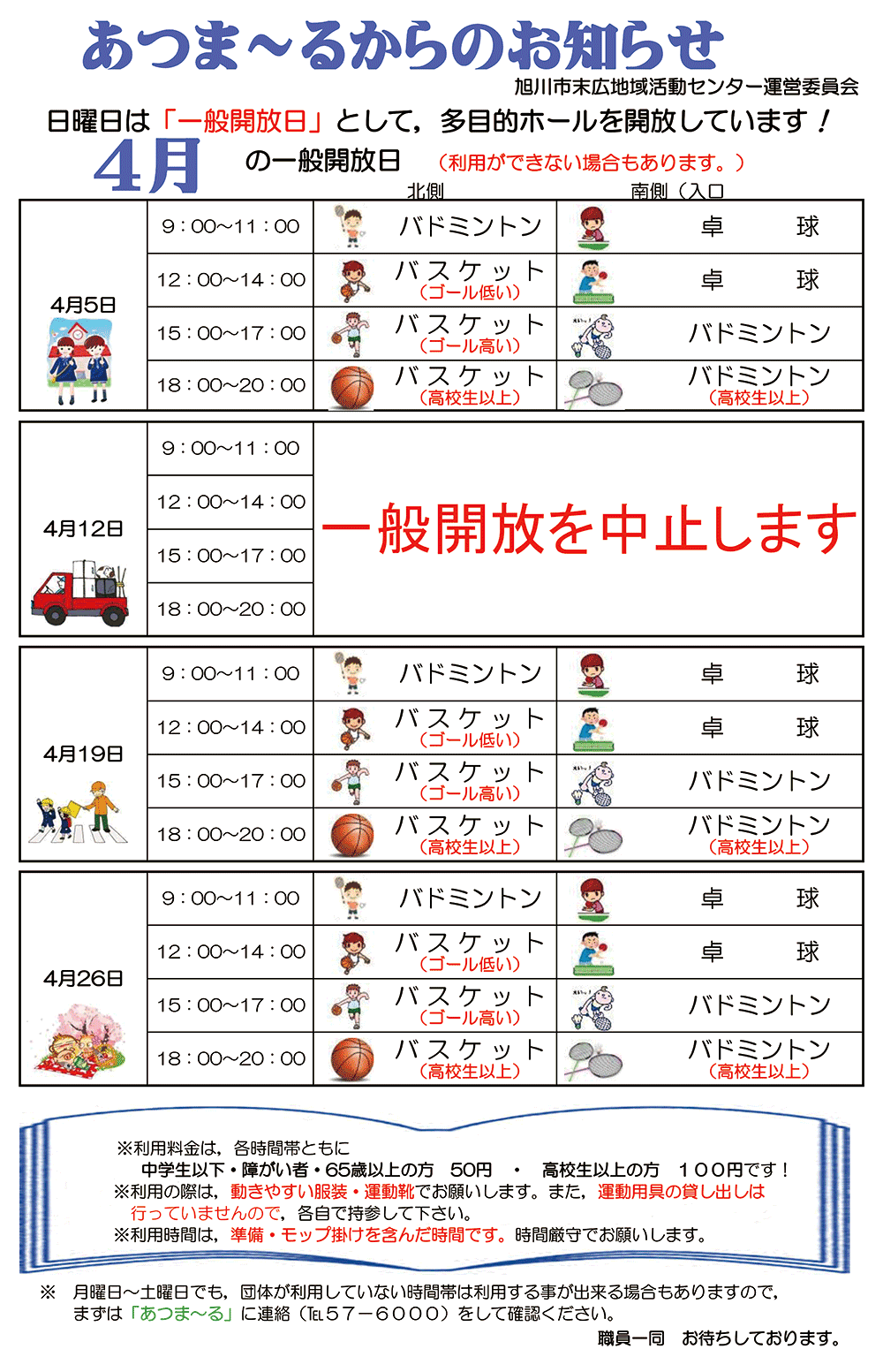 旭川市末広地域活動センターあつま~る(施設案内・一般開放日予定)