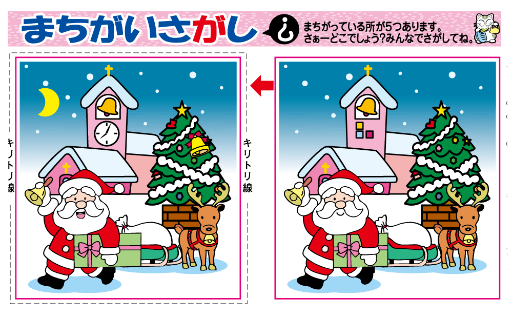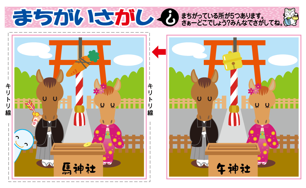 右の絵と違う部分を5カ所、フォームに文字で入力してご応募ください。