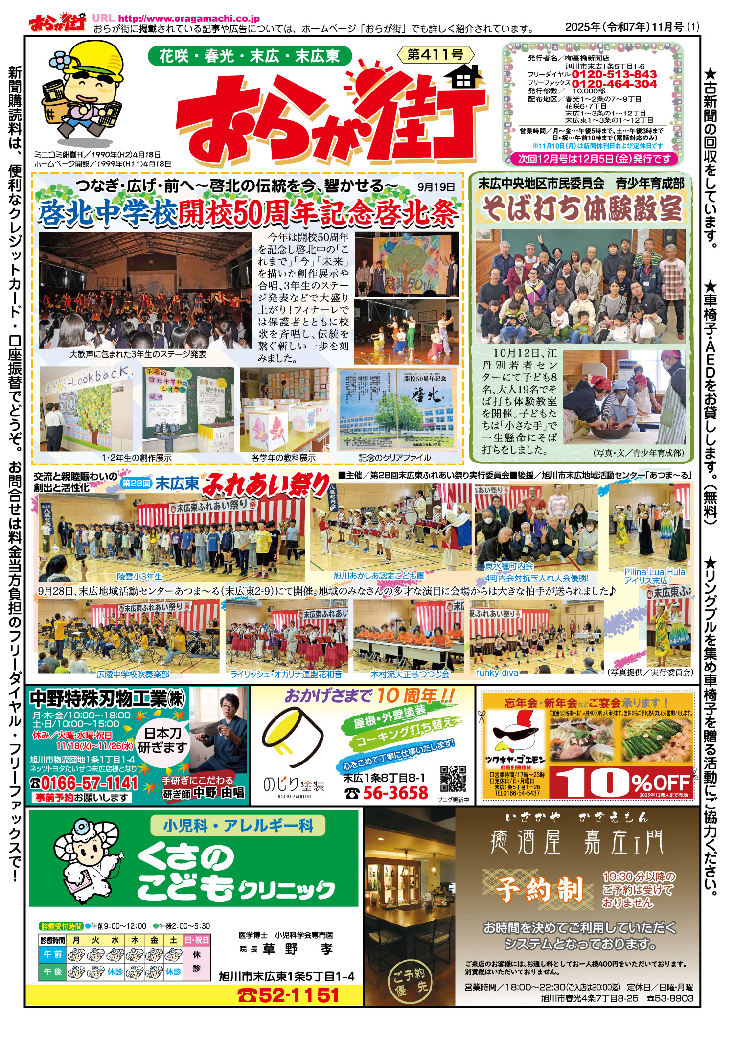 ■1面… 啓北中学校 開校50周年記念啓北祭 / そば打ち体験教室(末広中央地区市民委員会 青少年育成部) / 第28回末広東ふれあい祭り
